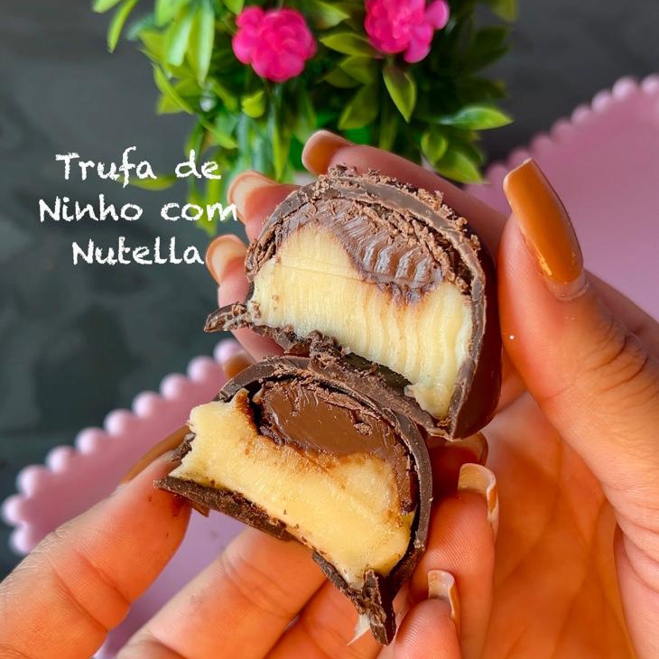 deliciosa trufa de leite ninho com nutella, cremosa cada mordida e uma sensaçao maravilhosa