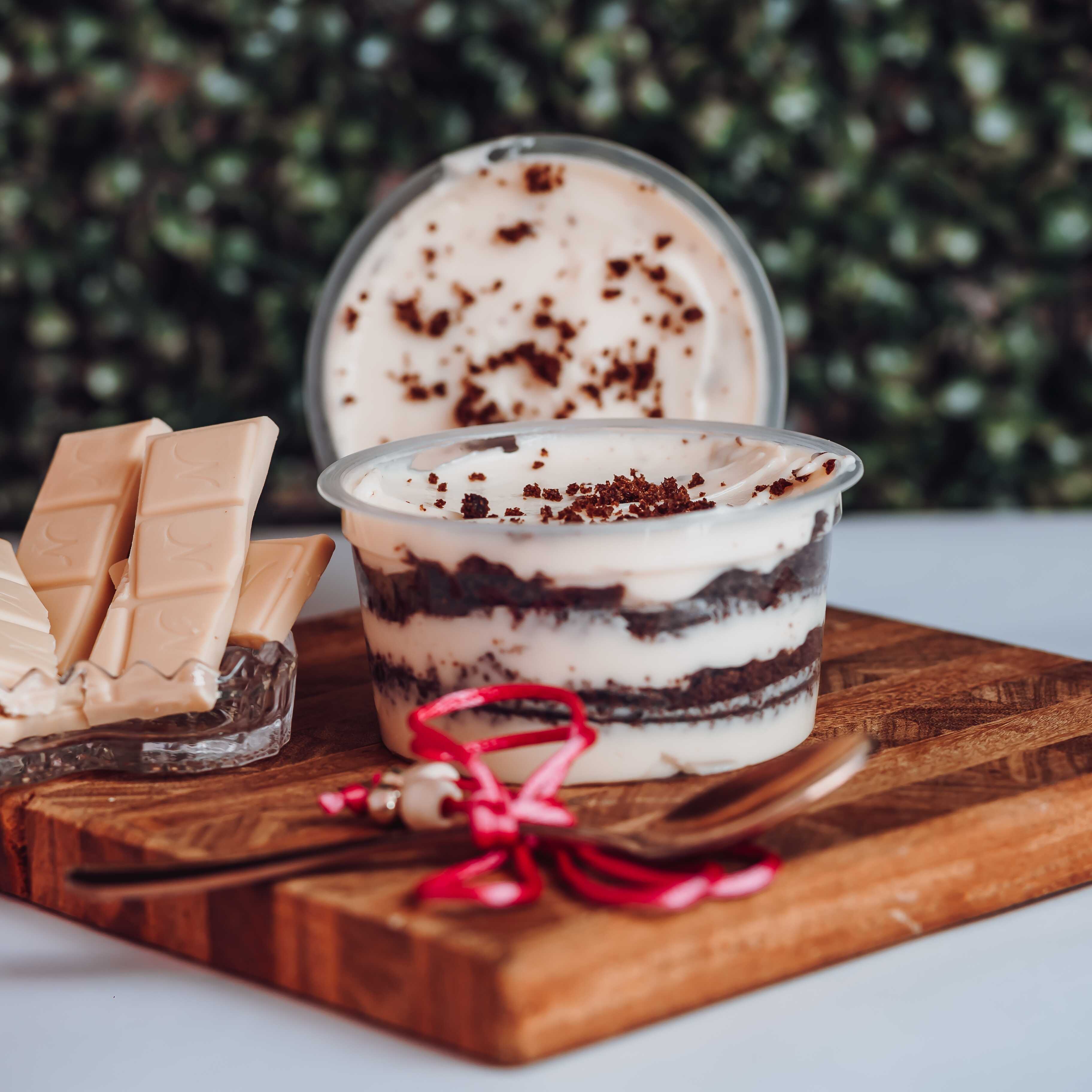Perfeito para os chocólatras de plantão! Camadas de bolo fofinho com chocolate branco, recheado com um brigadeiro cremoso e intenso. O equilíbrio ideal , para quem ama um sabor marcante e sofisticado.aprox200g