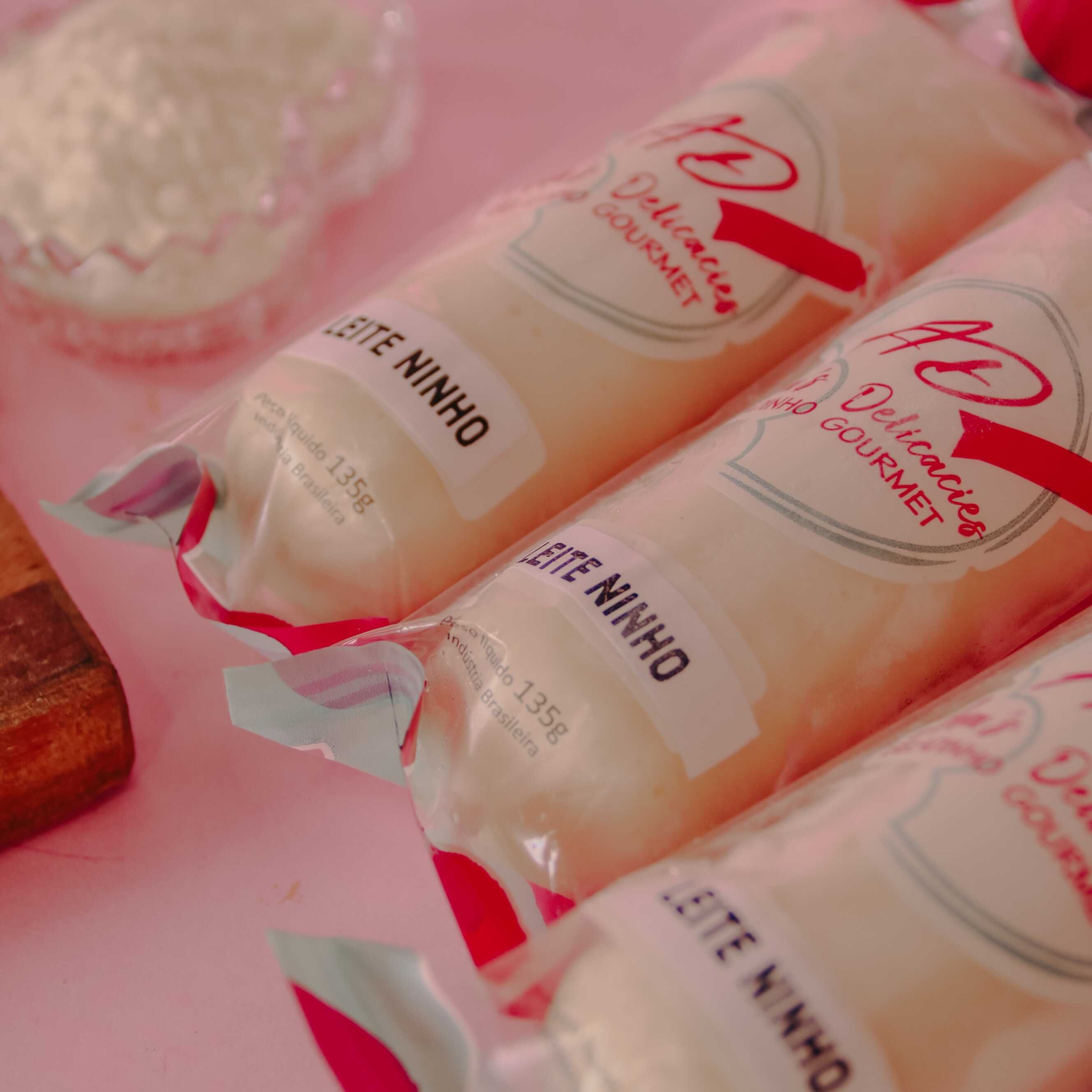 Delicia de Chup chup gourmet de leite ninho puro o saquinho em forma de sorvete .
