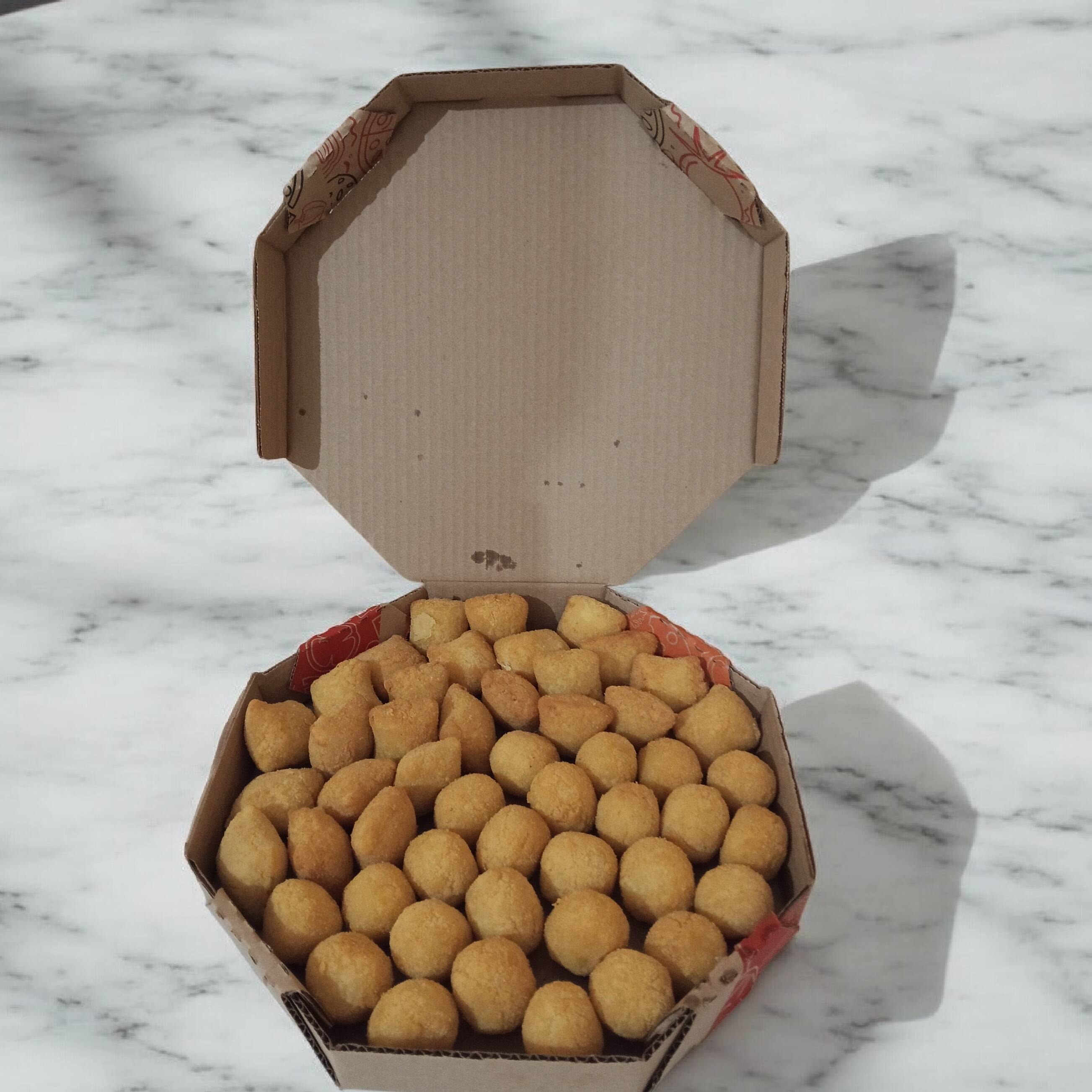 - 30 Coxinhas de Frango: Suculentas e crocantes, um clássico que todos amam! - 20 Bolinhas de Queijo: Cremosas por dentro e crocantes por fora, uma verdadeira delícia!
