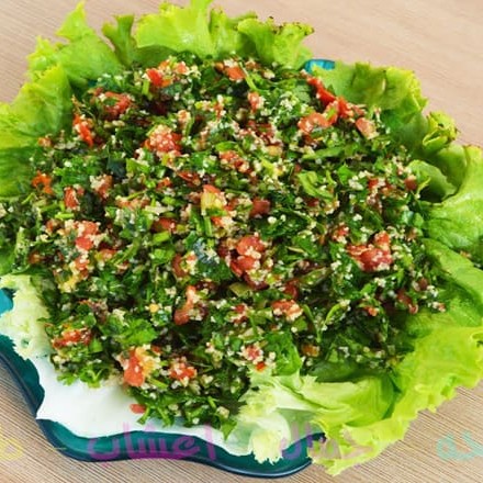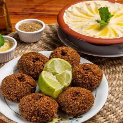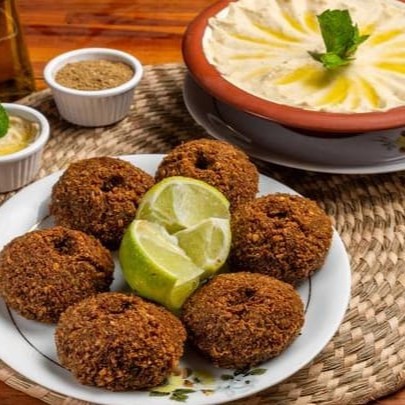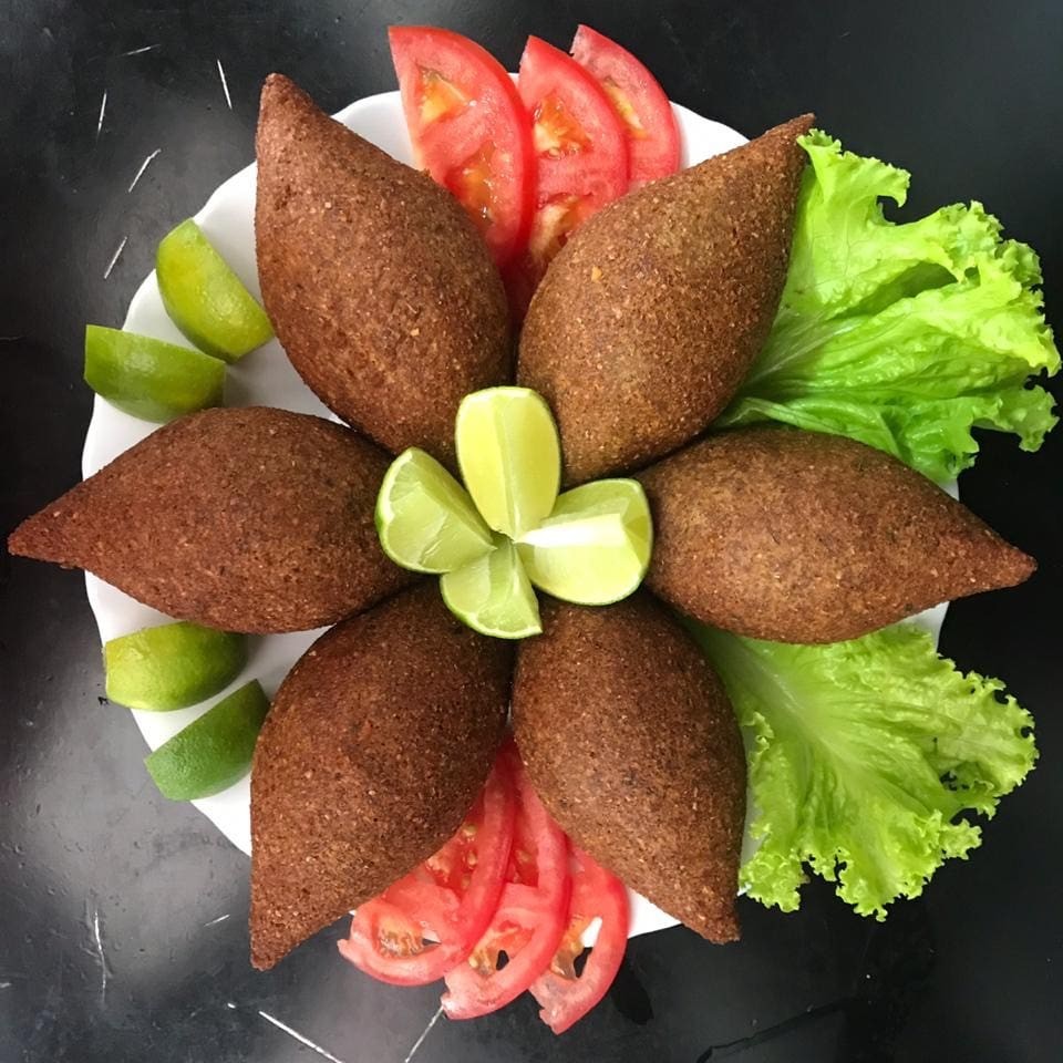 Kibe, coalhada seca homus ou tabule, pão sirio