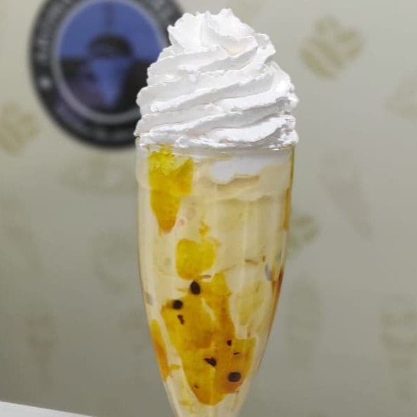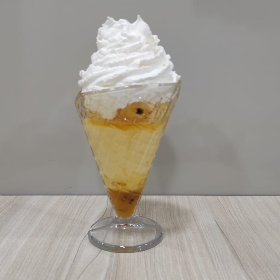 Sorvete de mousse de maracujá, calda de maracujá e creme de chantilly. Tamanho : Como 400 ml