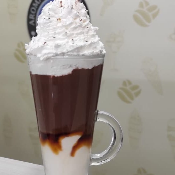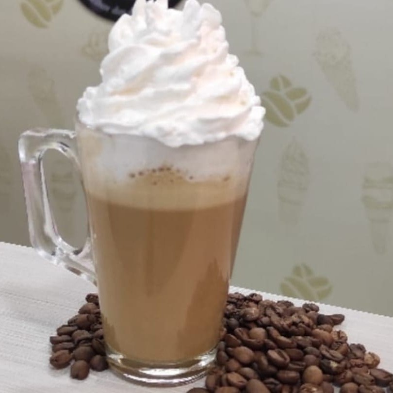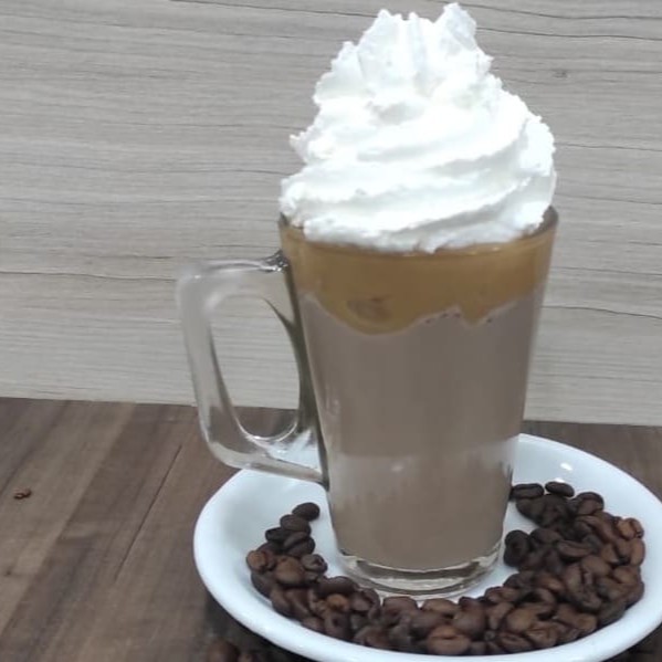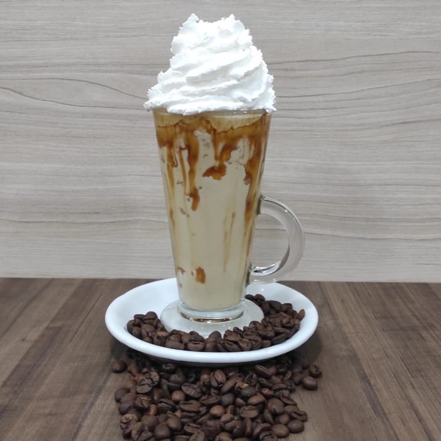 Café expresso gelado, sorvete de baunilha, calda de caramelo, cacau e canela em pó e creme de chantilly. Obs: Enviado no copo de 240 ml e o chantilly em embalagem separada.
