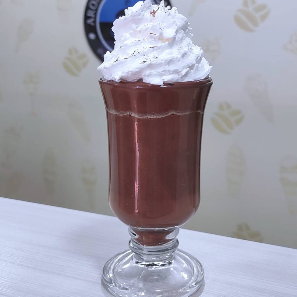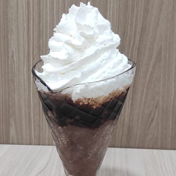 Chocolate cremoso gelado e creme de chantilly. Obs: Enviado no copo de 240 ml e o chantilly em embalagem separada.