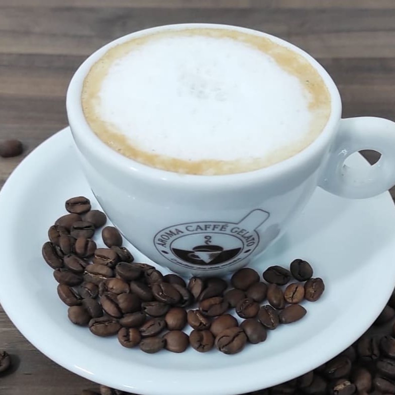 Café expresso e leite vaporizado com blend de cappuccino e Chantilly. Obs: Chantilly é enviado em embalagem separada.