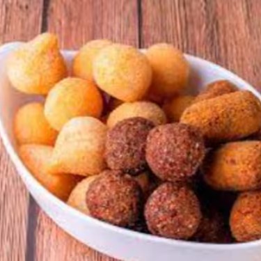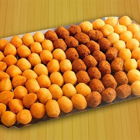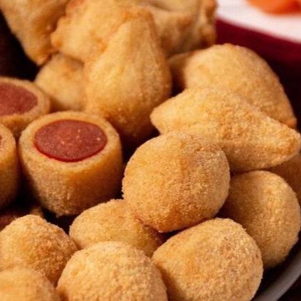 Feita com uma apetitosa massa temperada, crocante e sequinha. Aproximadamente 28 mini salgados a sua escolha. (salgados fritos na hora com aproximadamente 10g)