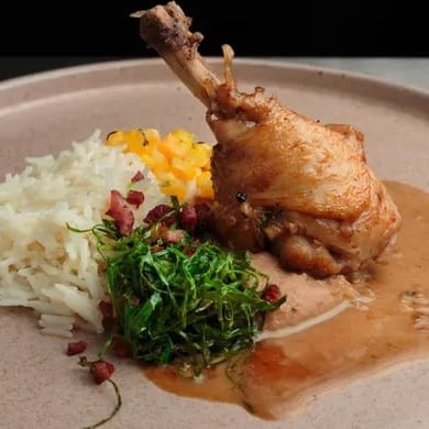 Arroz, Feijão, Purê de Batata Feito com Creme de Leite, Manteiga e Leite, Carne Cozida no Bacon, Linguiça Calabresa e Cebola. Acompanha Salada à Parte.