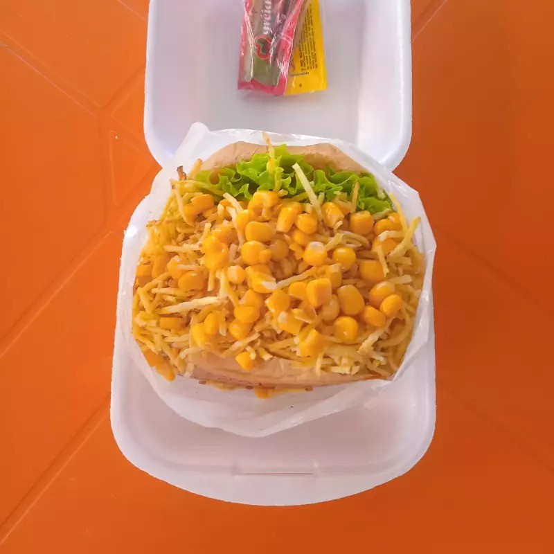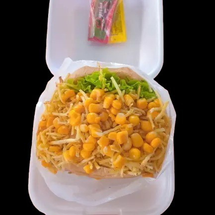 (Hambúrguer, queijo derretido, presunto, ovo, alface tomate, milho, batata palha crocantes e molho especial)