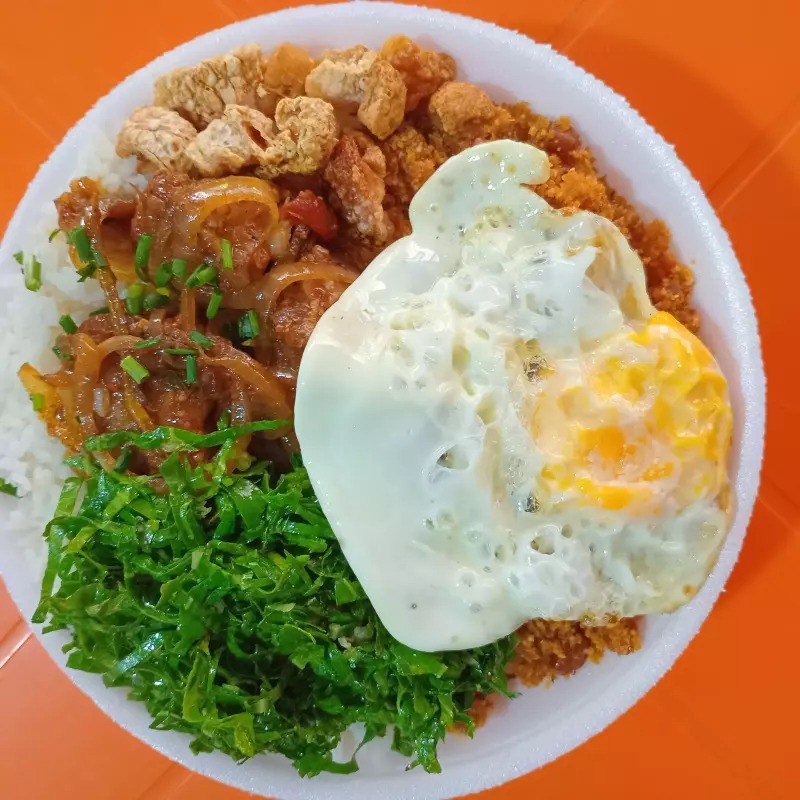 arroz ao alho,feijão tropeiro,costelinha,couve refogado,torresmo crocrante,pote de salada