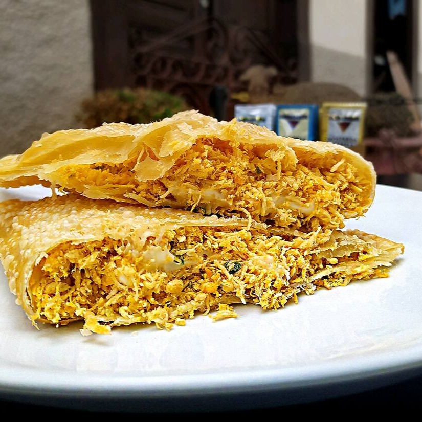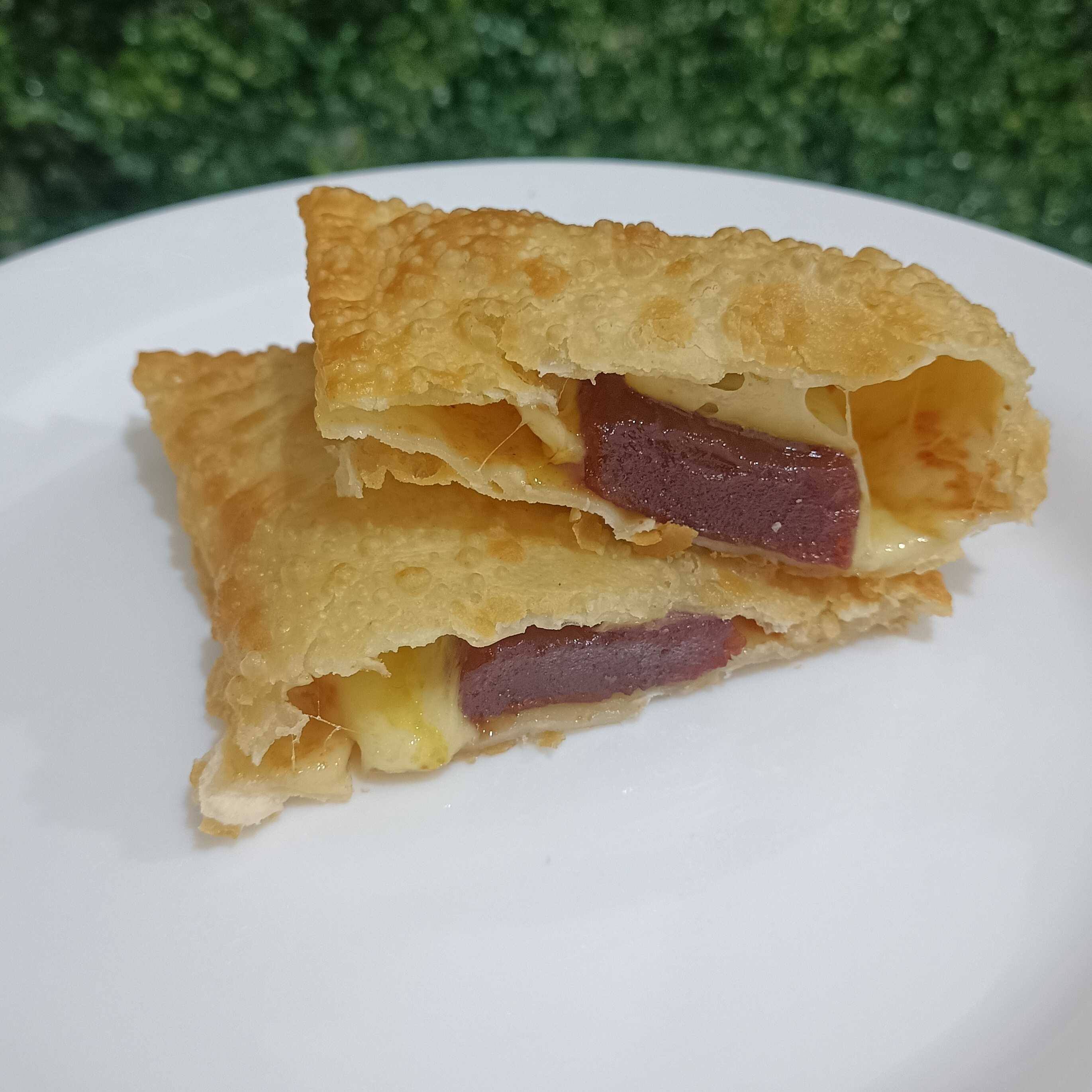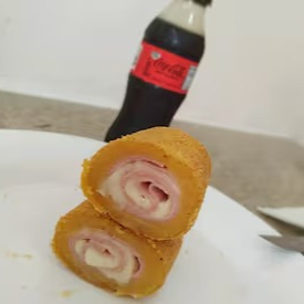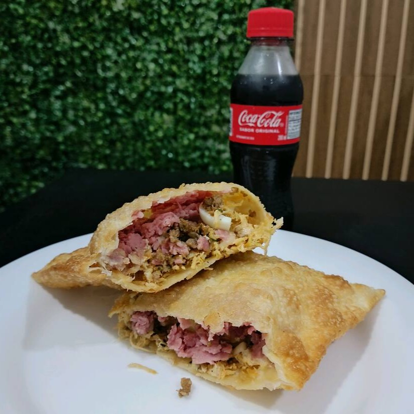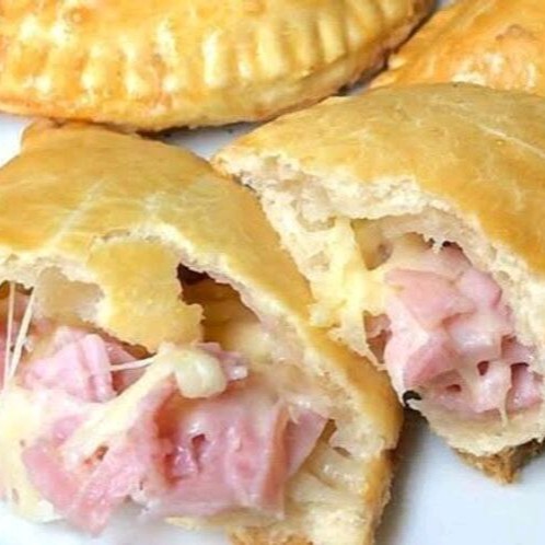 Recheado de presunto e mussarela com aquela massa super sequinha e crocante