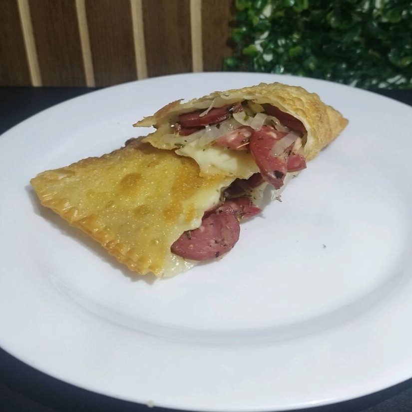 Pastelão de calabresa,com Bacon,pimenta calabresa e ovo.