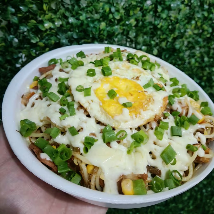 Macarrão com calabresa, bacon, carne seca desfiada,ovo frito, vinagrete,milho, cebolinha e muçarela. *A Marmita E De 750ml*.
