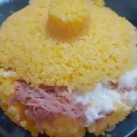Cuscuz Recheado De Presunto Com Calabresa, Mussarela E Vinagrete