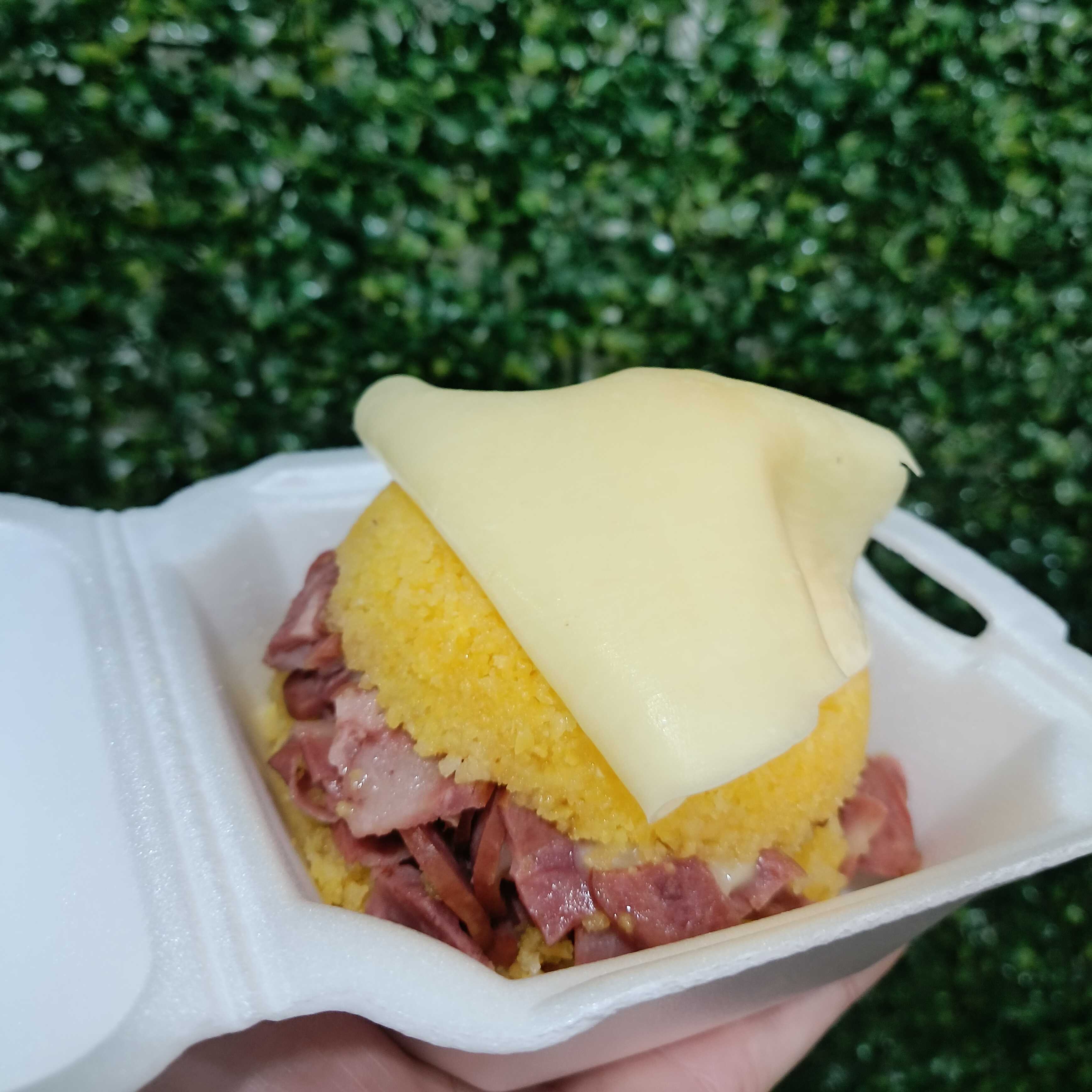 carne seca desfiada com catupiry, bacon, muçarela e vinagrete.