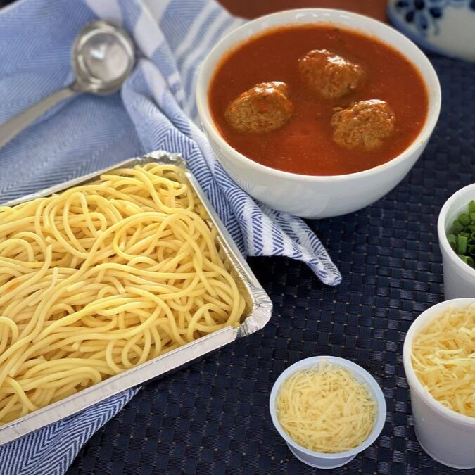 Massa de Spaghetti Barilla o n.º1 da Itália (420g), com suculentas almôndegas cozidas lentamente em molho especial de tomate (400g)! Hummm...