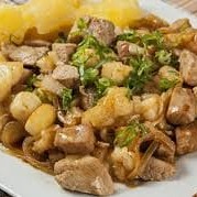 350g de lombo, cebola e 350g de mandioca frita
