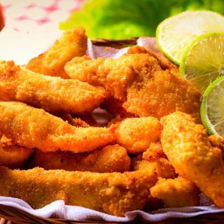 Filé de tilápia empanada e cebola