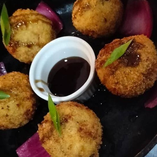 5 unidades de Bolinhos de tilápia e arroz, acompanha molho tarê