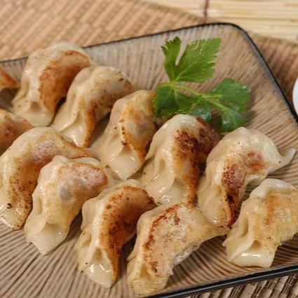 Guioza suíno com repolho, cenoura, gengibre e alho.