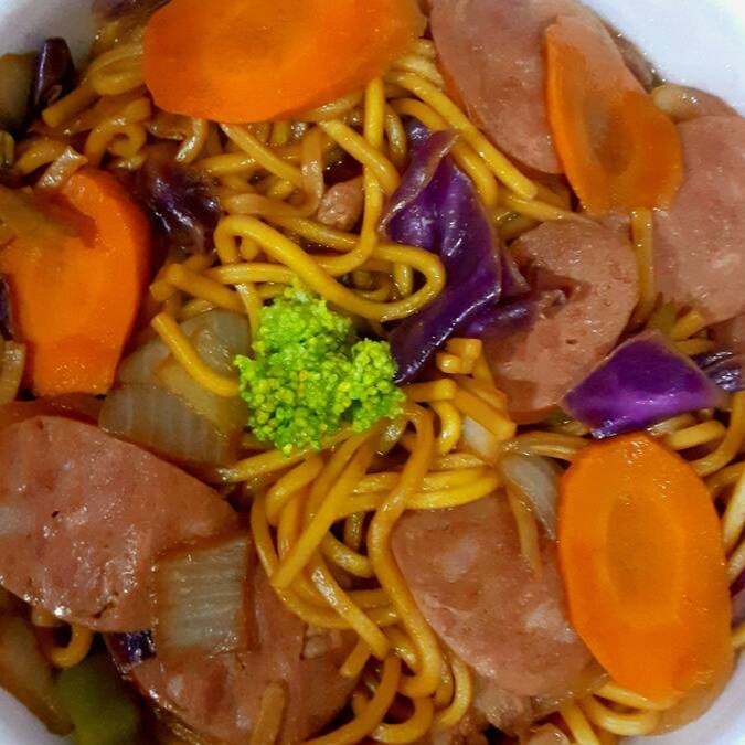Yakissoba no Marmitex! Massa, brócolis, cenoura, cebola, pimentão, repolho roxo e verde, calabresa defumada e molho oriental da casa. Acompanha amendoim crocante para adicionar ao prato.
