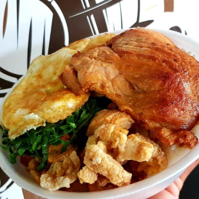 Arroz Branco ao Alho, Feijão carioca Caldo, Pernil, Salada do Dia (Salada dessa opção vai dentro da embalagem e não acompanha sobremesa)