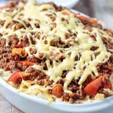 Macarrão Finalizado na Chapa com Molho, Carne Moída à Bolonhesa, Bastante Queijo Mussarela, Orégano e Cheiro Verde Aproximadamente 1kg
