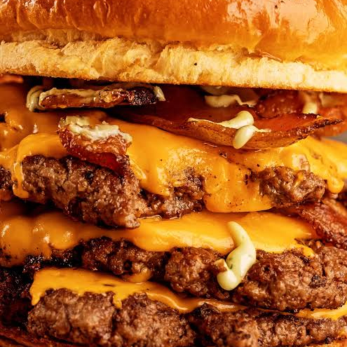 Pão Brioche Selado na Manteiga, 3x Carne Artesanal 60g, Fatias de Bacon Crocante, Queijo Cheddar Cremoso, Doritos Nacho Cheese, Picles, Cebola Caramelizada, Alface Americana, Tomate, Maionese Caseira de Bacon (Acompanha Batata Frita)