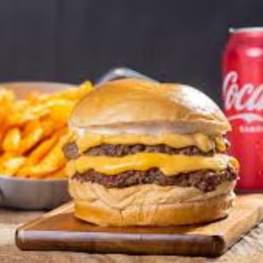 Pão Brioche, Blend 100gr, cheddar, bacon, barbecue. + coca cola lata 350 + fritas (Foto Ilustrativa)