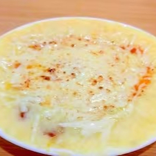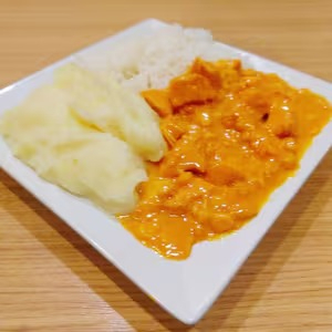 Filé de frango empanado, molho ao sugo, purê de batata e mussarela. Acompanha uma porção de arroz