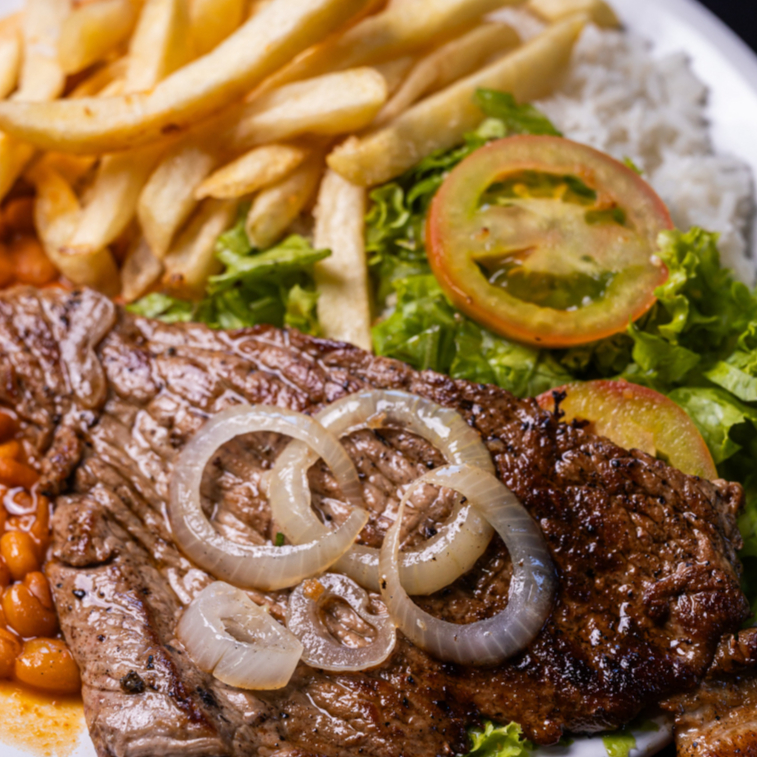 Escolha uma carne e quatro acompanhamentos do seu gosto