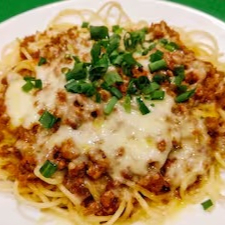 Espaguete com o nosso delicioso molho à bolonhesa caseiro. Acompanha queijo mussarela
