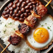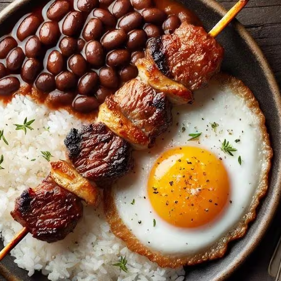 Espeto De Picanha, Arroz, Feijão E Ovo Frito