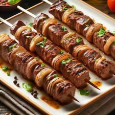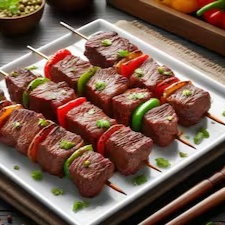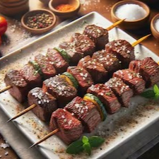 Serve uma pessoa, Churrasco de espeto, um prato robusto e saboroso.