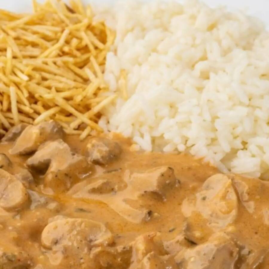 Estrogonoff De Frango, Arroz E Batata Palha