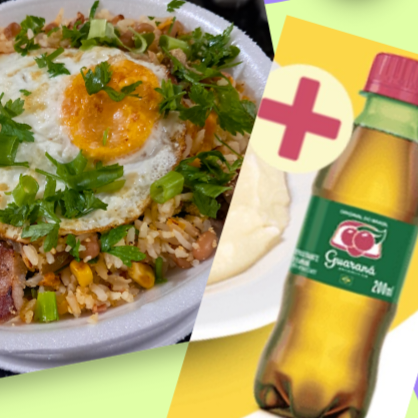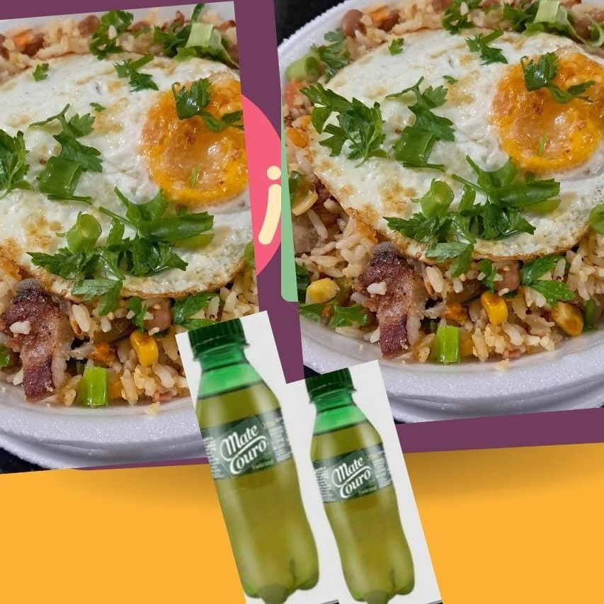 Arroz, feijão, bacon, calabresa, ovo frito, cenoura, tomate, pimentão, cebola, milho, cheiro verde, ➕️ 1 pepsi 269ml