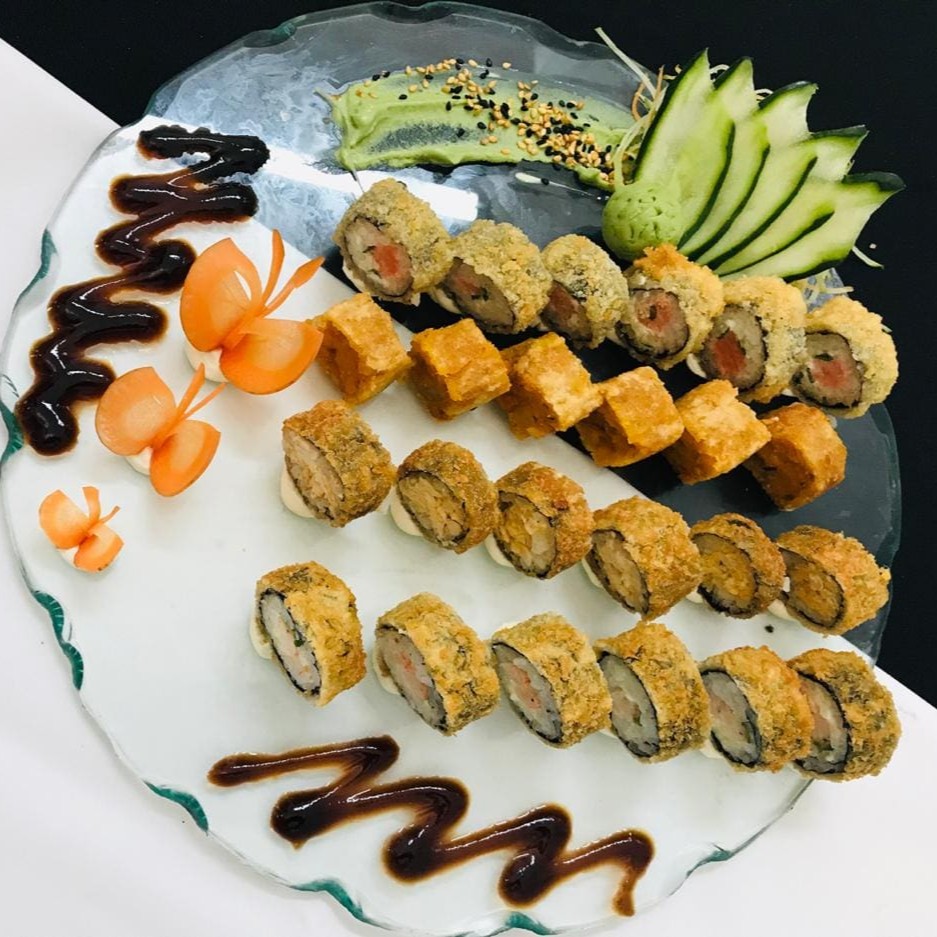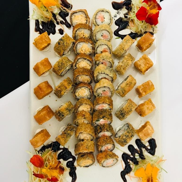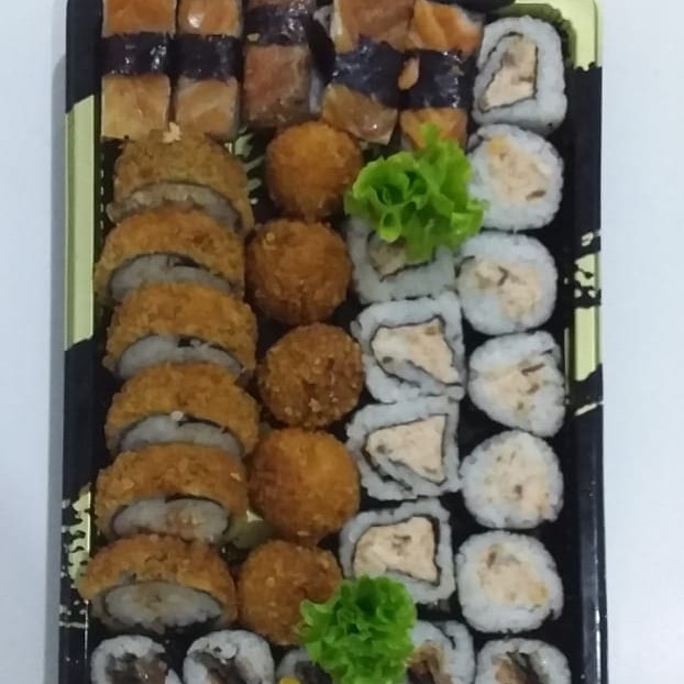 2 Sashimi Salmão 2 Niguiri Salmão Geleia Picantes 2 Niguiri Salmão 2 Niguiri Skin 2 Niguiri Kani 5 Maki Skin 5 Uramaki Skin Cheese 6 Hot Chicken