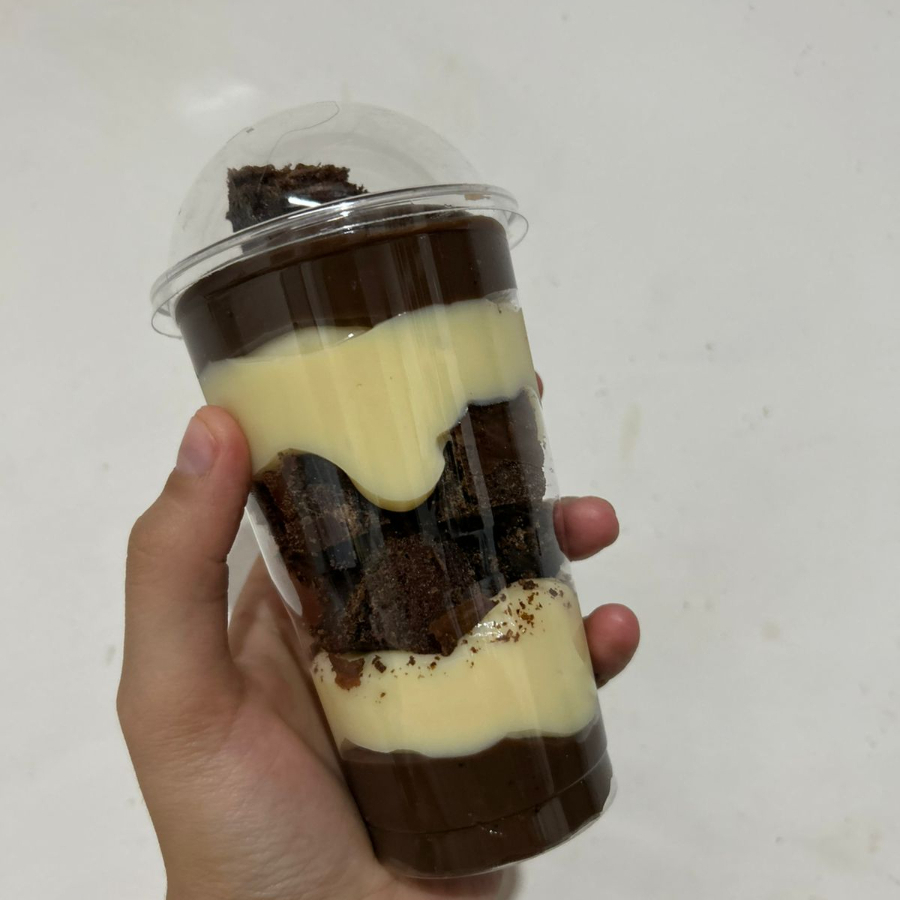 Deliciosa trufa de brownie, com casquinha de chocolate e pedaços de brownie por dentro
