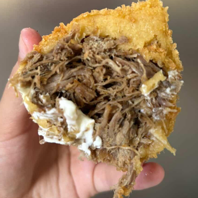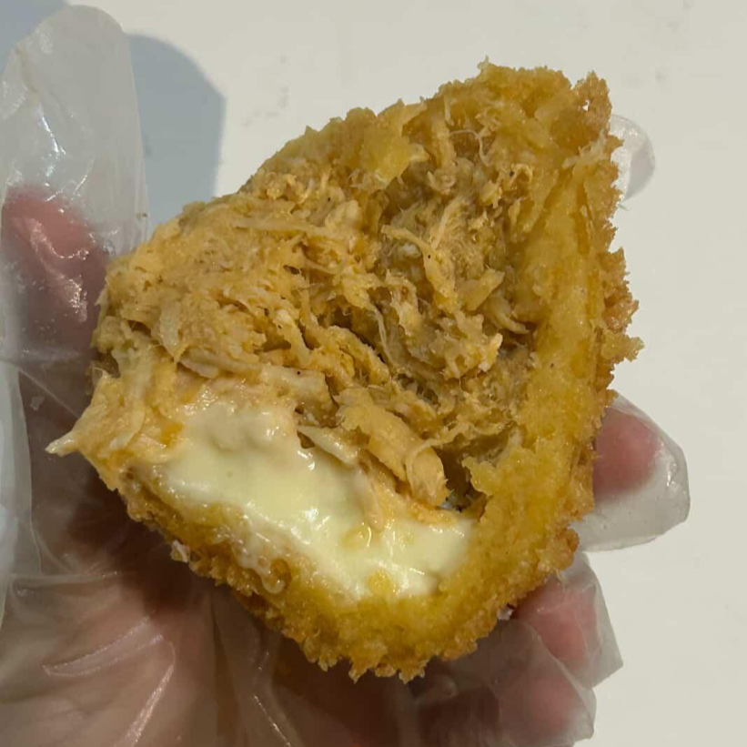 Coxinha de carne desfiada com cream cheese, bem cremosa por dentro e empanada na farinha panko, que garante uma casquinha extra crocante e dourada. Uma combinação deliciosa e irresistível!