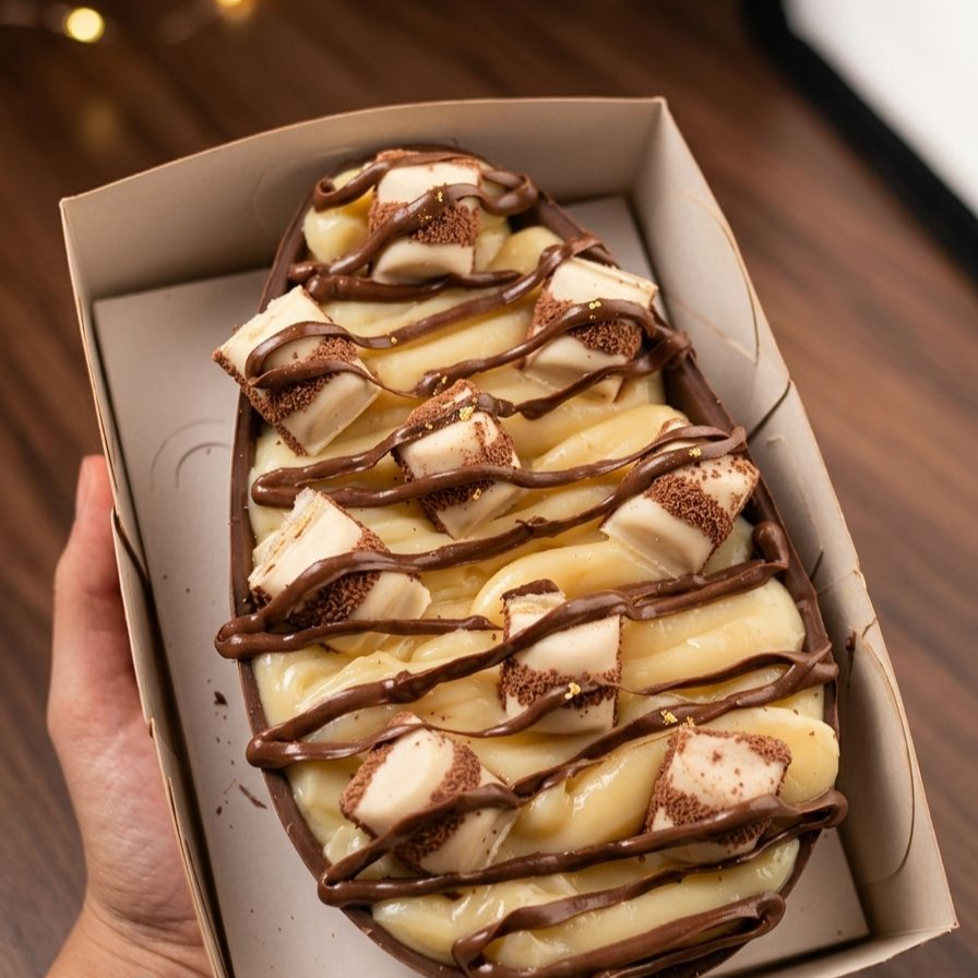 Delicioso ovo de Páscoa com casca feita de chocolate blend (ao leite + meio amargo), equilibrando o sabor na medida certa! O melhor: você escolhe o recheio do seu jeito 💖