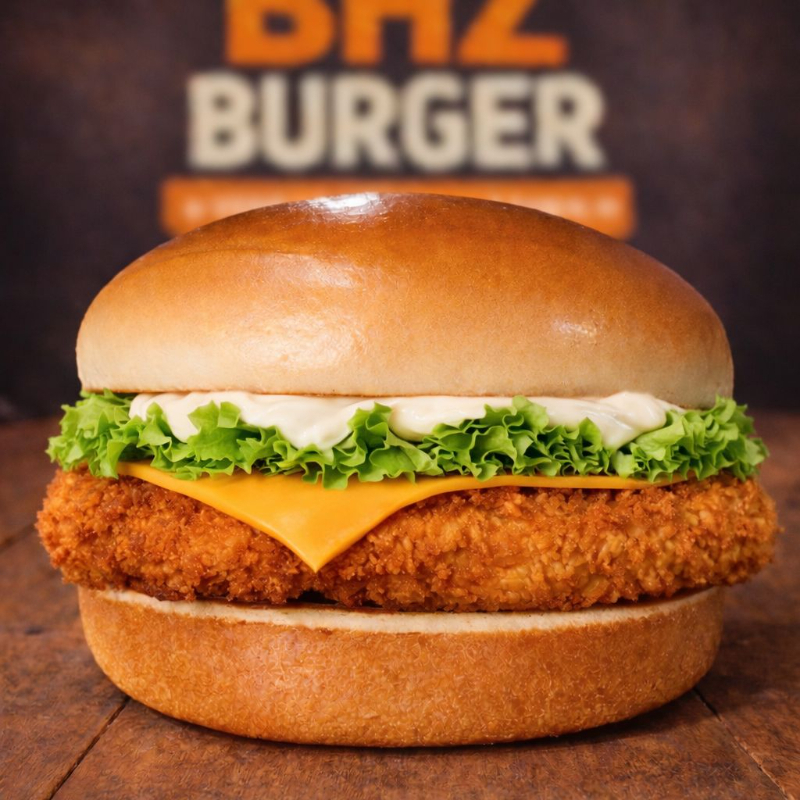 Pão de Brioche Especial, Tira Crocante de Frango, Queijo Cheddar, Alface Americana e Maionese Grill.