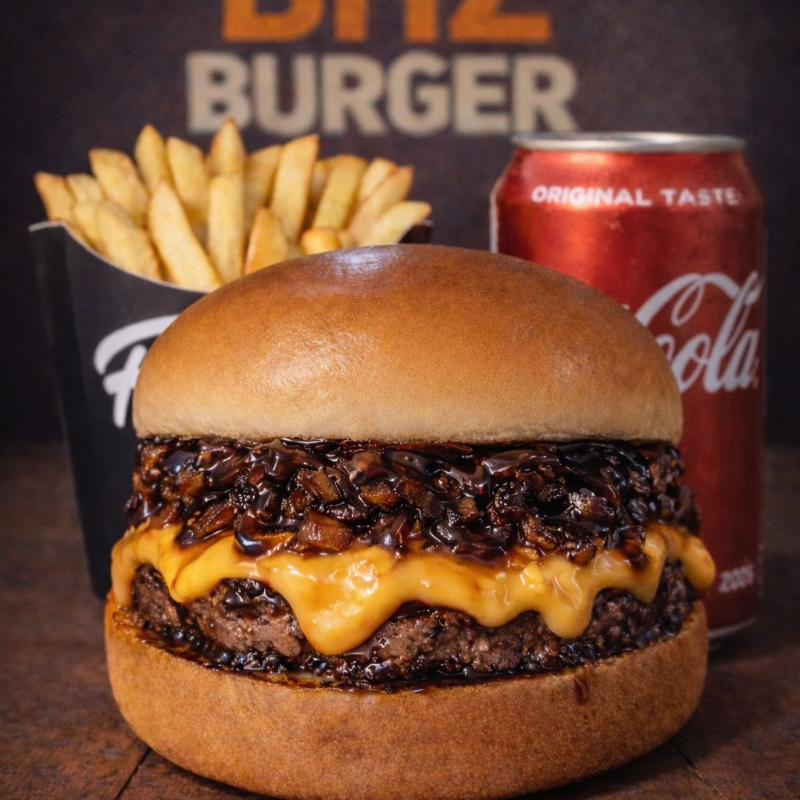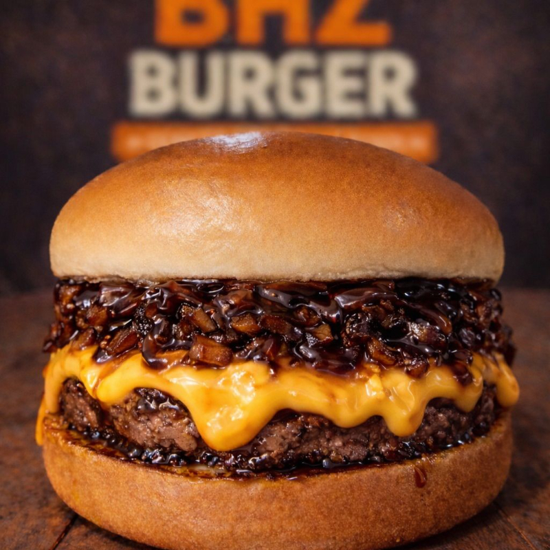 Pão De Brioche Especial, Suculento Burger de 130g, Cheddar Cremoso, Cebola Caramelizada Levemente Adocicada e Molho Barbecue.