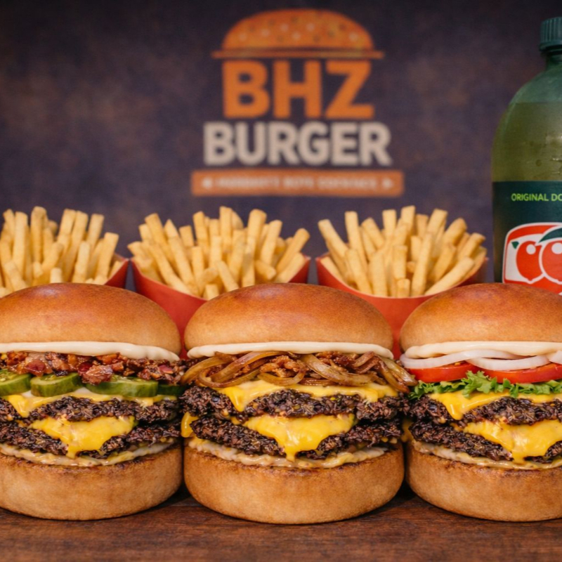 Escolha Três Burgers Premium do Nosso Cardápio Entre os Mais Vendidos da Casa, Acompanhados de Três Batatas Fritas e um Refrigerante de 2 Litros.