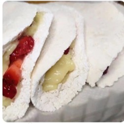 Deliciosa tapioca recheada com doce de leite artesanal e coco em flocos.