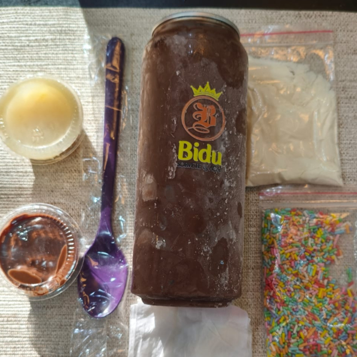 SORVETE CO 4 ACOMPANHAMENTOS ,LEITE EM PÓ , GRANULADO, CREME DE AVELÃ E LEITE CONDENSADO