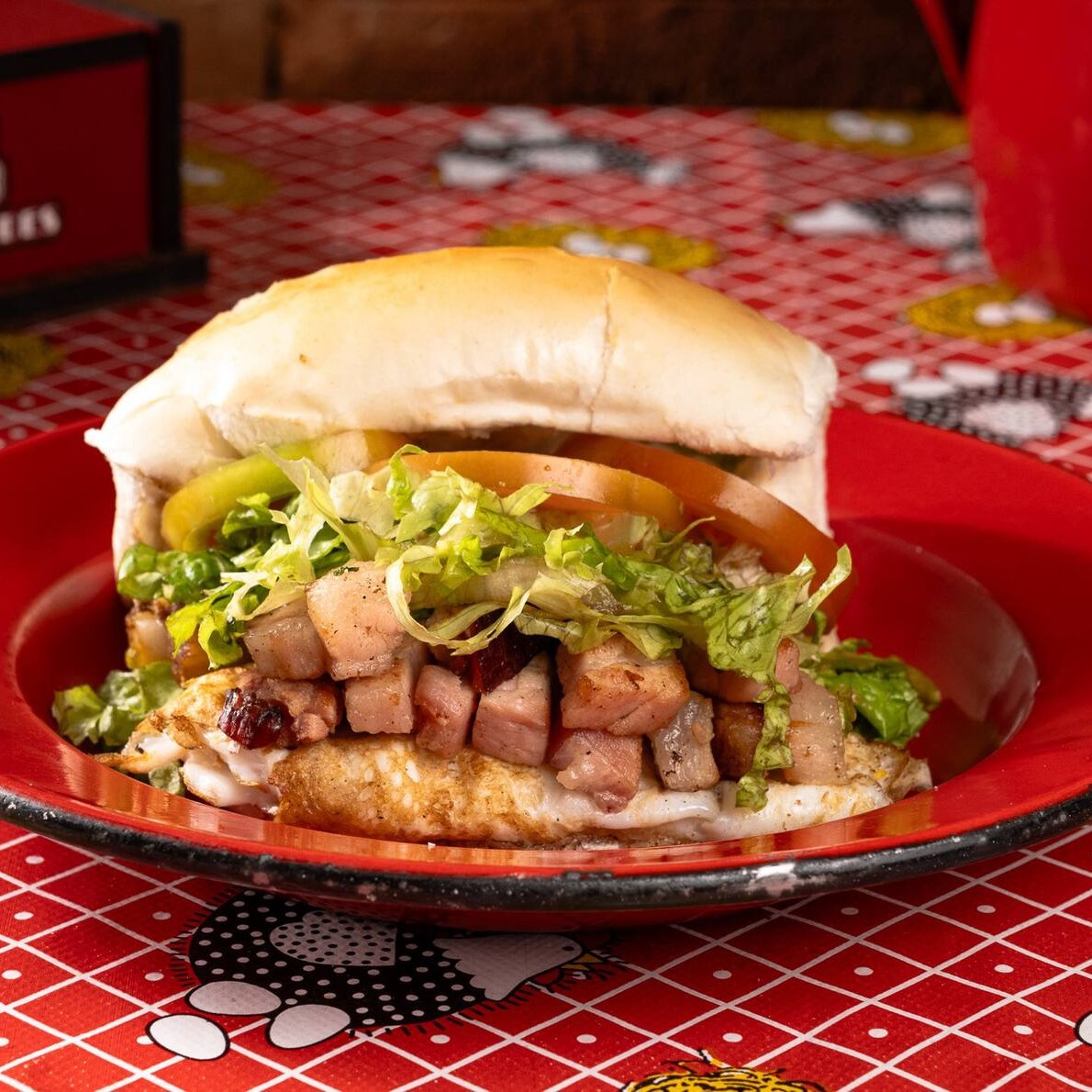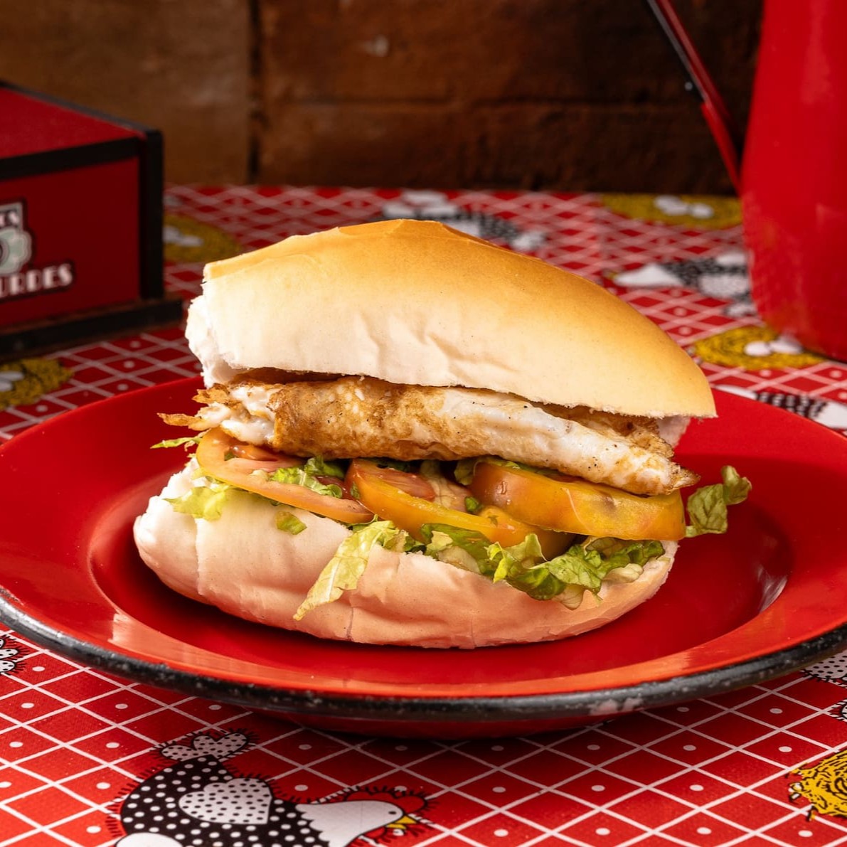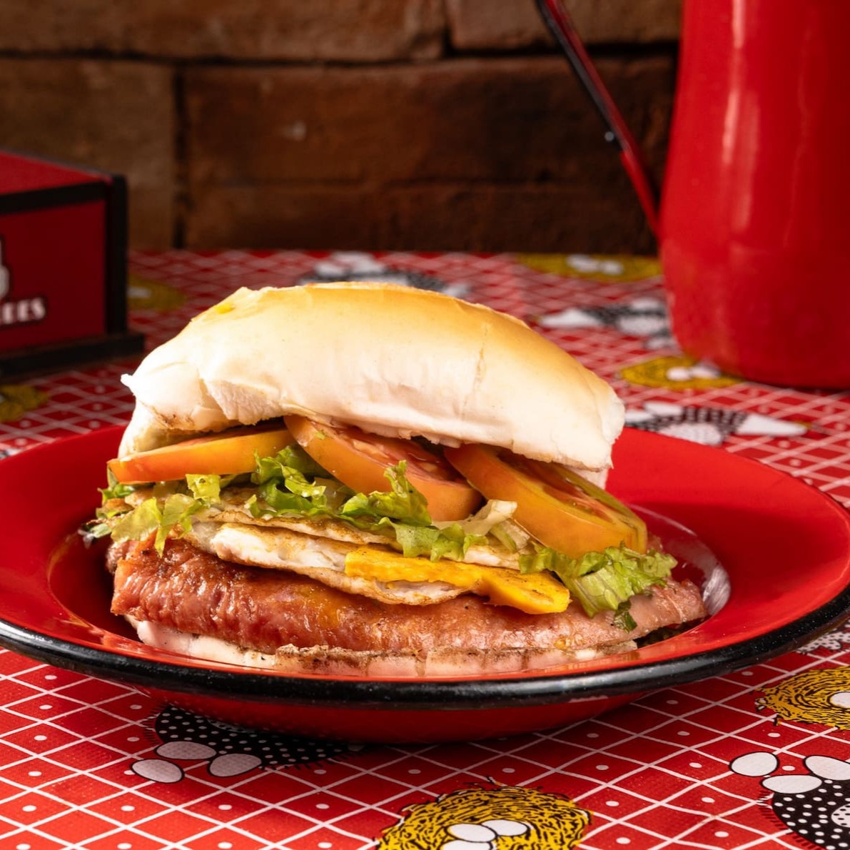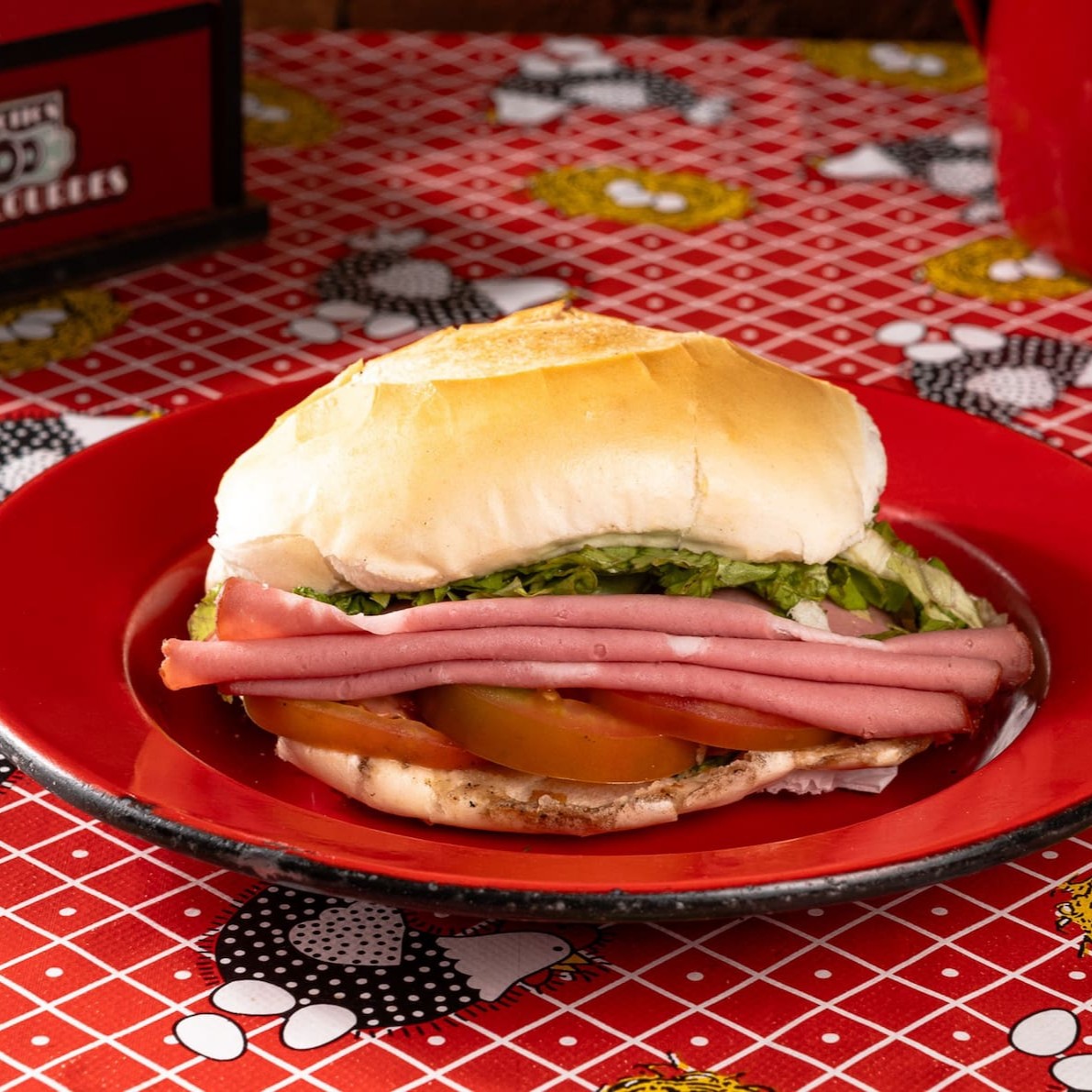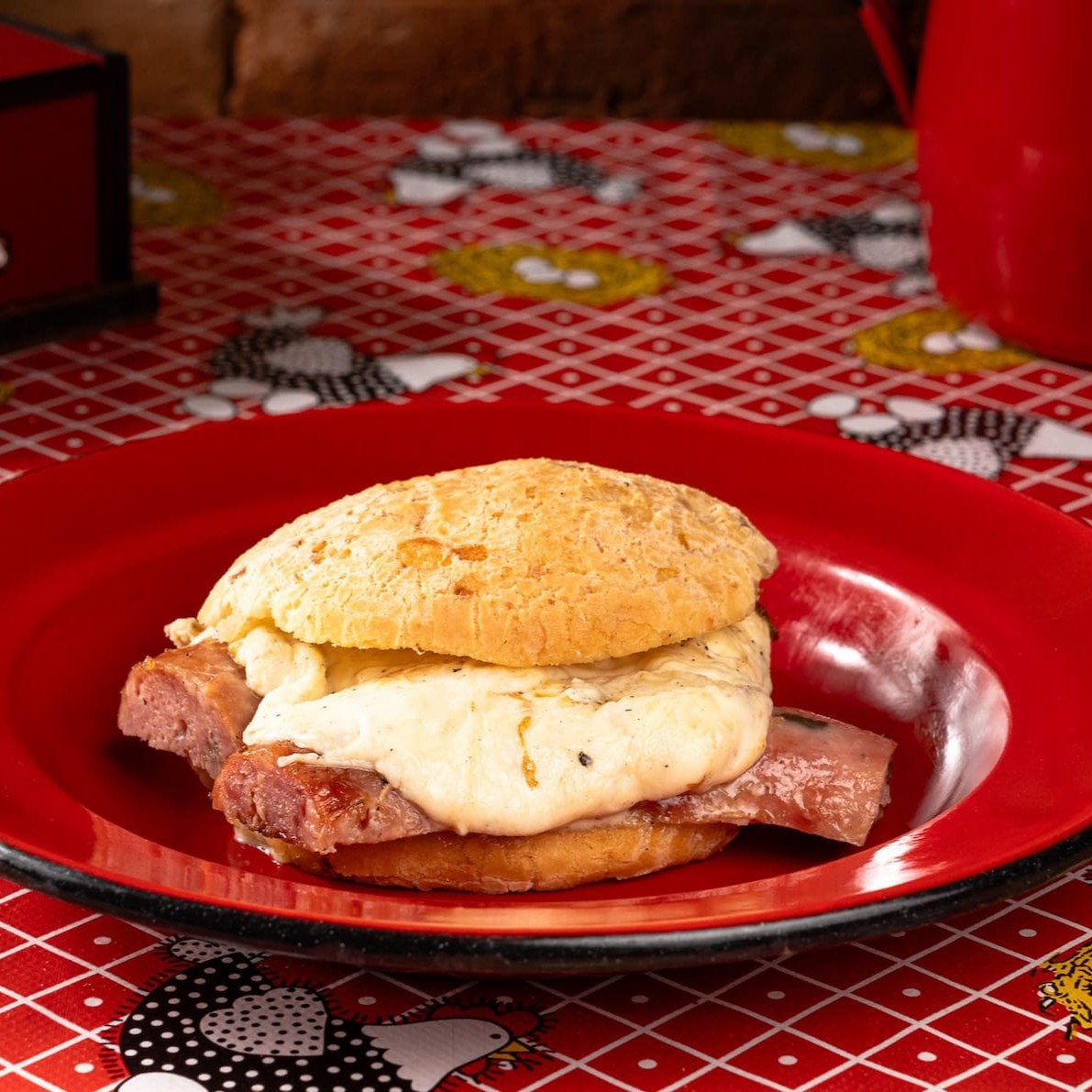 Pão Francês com linguiça Artesanal, ovo, alface e tomate