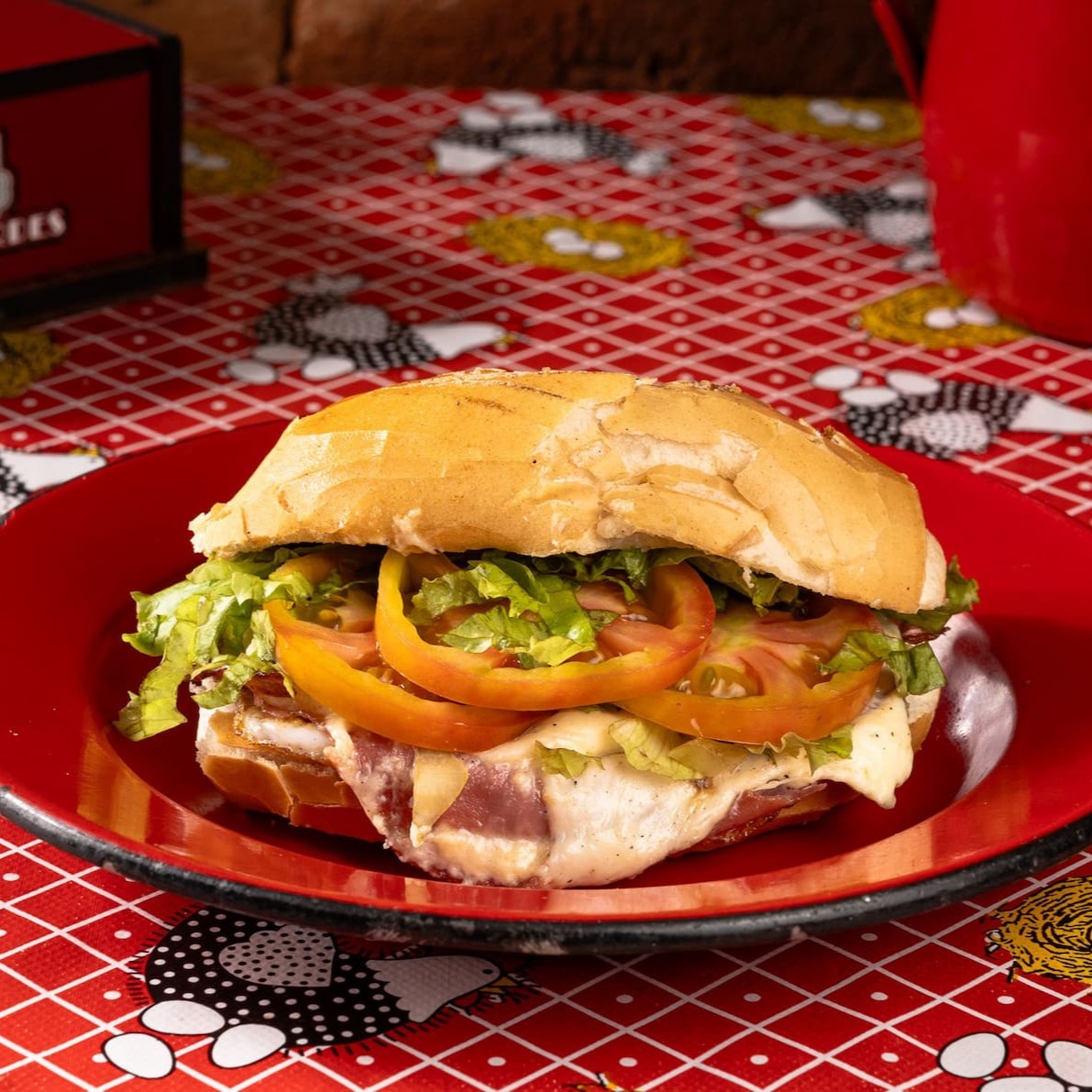 Pão Francês com ovo ,queijo, mortadela defumada, alface e tomate