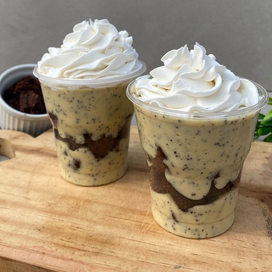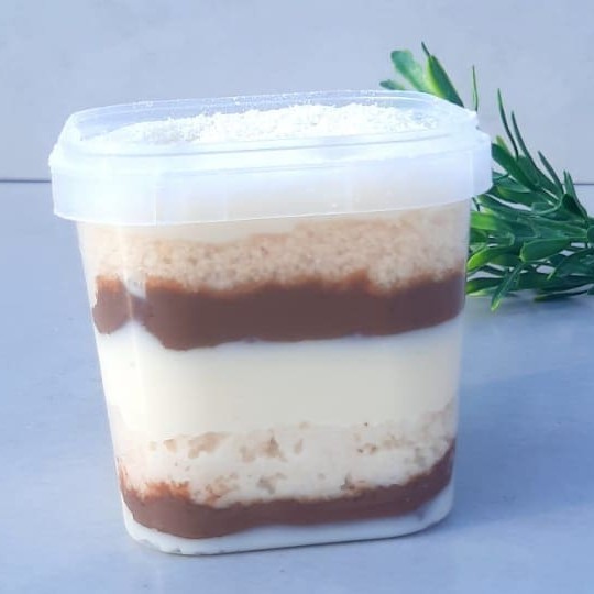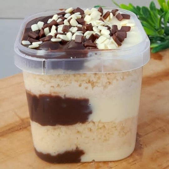 Delicie-se com nosso bolo de pote com camadas irresistíveis de massa branca molhadinha e recheio cremoso de brigadeiro de Leite Ninho e brigadeiro de chocolate. Uma explosão de sabor em cada colherada.