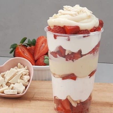 Uma deliciosa combinação de brigadeiro de Ninho, morango fresco, chocolate branco e mousse de Ninho .Um doce irresistível para alegrar o seu Dia!