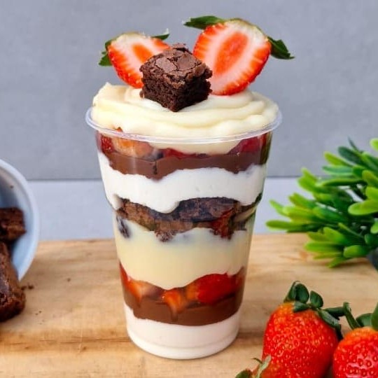 Sabores incríveis do nosso delicioso mousse de Ninho, Nutella, morangos frescos, brigadeiro cremoso de Ninho intercalado com um brownie molhadinho uma sobremesa que a cada colherada da um gostinho de quero mais.