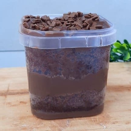 Delicie-se com nosso bolo no pote. Uma combinação irresistível de massa de chocolate molhadinha com brigadeiro cremoso, perfeito para satisfazer seu desejo por algo doce e saboroso